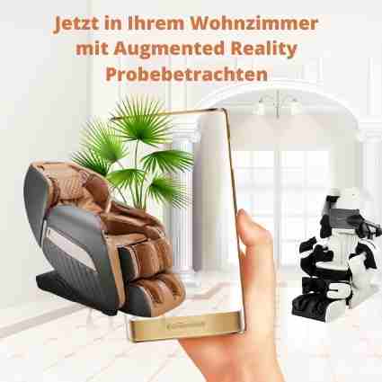Launch der virtuellen Massagesessel-Ausstellung. Damit können sich Interessenten ihren Wunschsessel in ihrem Büro oder privaten Räumen und gewünschten Umgebung von allen Seiten Online am Handy ansehen.